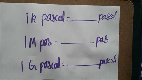 • 1 Kilopascal (kPa) = 1,000 Pascals (Pa)
