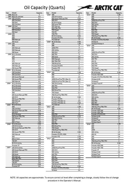 2001 Arctic Cat 400 4x4 Oil Capacity Guide