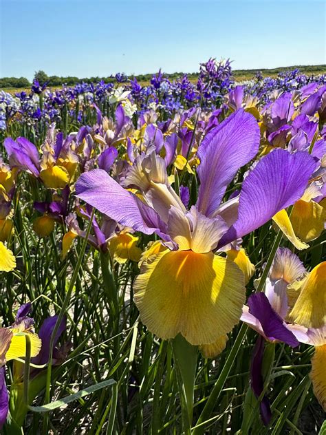 2. ’ степforward’: A stunning blend of colors, step Forward features vibrant purple standards and contrasting yellow falls. It’s a showstopper in any garden setting. This iris is especially beautiful in mass plantings, where its colors can really shine.