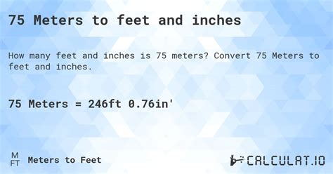 Now for the fun part: the actual conversion! To convert meters to feet, we’ll use a simple formula: Feet = Meters × 3.28084 . So, to find out how many feet are in 75 meters, we simply multiply 75 by 3.28084. Grab your calculators (or your mental math skills!) because we’re about to get precise. This conversion factor, 3.28084, is the key to bridging the gap between the metric and imperial systems. It represents the exact number of feet that fit into a single meter. This level of precision is essential in many applications, particularly in engineering and construction, where even small discrepancies can lead to significant problems. But why this specific number? It all boils down to the historical definitions and standardization of these units. The meter is rooted in scientific measurements, while the foot has more historical, human-centric origins. The beauty of this conversion factor is that it provides a stable and reliable bridge between these two systems. So, whether you’re a seasoned professional or just a curious learner, this formula is your go-to tool for navigating the world of measurements.