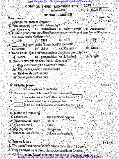 Want to absolutely smash your 7th social science quarterly exam and get those high scores? Awesome! It’s totally achievable with the right approach. We’ve already talked about using the 7th social science quarterly question papers 2023 , but let’s add some extra winning strategies. Firstly, understand the syllabus thoroughly . Don’t just skim through it. Know exactly which chapters and topics are included for the quarterly exam. This helps you focus your energy and avoid wasting time on subjects that aren’t relevant. Make a checklist and tick off topics as you feel confident about them. Secondly, make detailed notes, but keep them concise . While listening in class, jot down the main points. Afterward, rewrite these notes in your own words, focusing on clarity and key information. Use bullet points, diagrams, and timelines – whatever helps you remember. Highlighting important terms and definitions is a must! These notes will be your go-to revision material. Thirdly, regular revision is key . Don’t wait until the last minute. Consistent, short study sessions are much more effective than cramming. Try to revise topics within 24 hours of learning them, and then revisit them periodically. This helps move information from your short-term to your long-term memory. Now, let’s talk about answering questions. Read each question carefully . Understand what is being asked before you start writing. Are they asking for an explanation, a comparison, or just a definition? Underlining keywords in the question can help you focus your answer. When writing your answers, be clear, concise, and structured . Use the notes you made, and ensure your answers directly address the question. For essay-type questions, use an introduction, body paragraphs, and a conclusion. Ensure smooth transitions between points. Don’t forget to use relevant examples and evidence to support your points, especially in history and civics. This shows a deeper understanding and makes your answers more convincing. For geography, practice your map skills diligently . Label maps accurately, and be prepared to answer questions related to geographical features, climate, and resources. If diagrams are required, make sure they are neat and clearly labeled. Lastly, manage your time during the exam . Once you receive the paper, quickly scan through it. Allocate specific time slots for each section or question based on its marks. Start with questions you feel most confident about to build momentum, but don’t spend too much time on any single question. If you get stuck, move on and come back later. Review your answers in the last few minutes to catch any silly mistakes. By combining smart study techniques, effective use of resources like the 7th social science quarterly question papers 2023 , and a strategic approach to the exam itself, you’ll be well on your way to achieving those top marks. You’ve got this!
