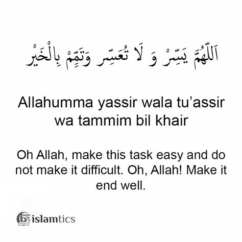 In addition to these specific situations, it’s also beneficial to make “Allahumma Yassir Wala Tu’assir” a part of your daily routine. Recite it in the morning as you start your day, in the evening before you go to bed, or anytime in between when you feel the need for Allah’s assistance. The more you recite it, the more you’ll internalize its meaning and the more you’ll feel connected to Allah. It’s like building a strong foundation of faith and reliance on Allah that will support you through all of life’s ups and downs. So, don’t hesitate to use “Allahumma Yassir Wala Tu’assir” whenever you need it. It’s a powerful tool that can help you unlock ease, overcome difficulties, and achieve success in all your endeavors.