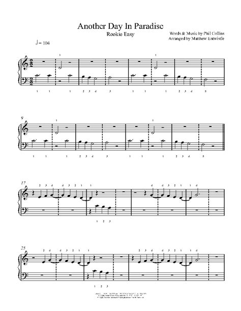 When we talk about the melody of “Another Day in Paradise,” we’re really talking about a carefully constructed piece of musical architecture. Think of it as a building: each note is a brick, and the way those notes are arranged creates the overall structure and feeling. The song’s melody is characterized by its stepwise motion , meaning that the notes generally move up or down in small increments. This creates a sense of smoothness and accessibility, making the melody easy to sing along to and remember. However, this simplicity is deceptive, as the melody also incorporates subtle leaps and syncopations that add interest and prevent it from becoming monotonous. The phrasing of the melody is also crucial , with each phrase carefully crafted to build tension and release, mirroring the emotional arc of the lyrics. Collins uses a combination of legato (smooth and connected) and staccato (short and detached) notes to create a nuanced and expressive delivery. The melodic contour, or the shape of the melody as it rises and falls, is also significant. In “Another Day in Paradise,” the melody tends to ascend gradually, creating a sense of yearning and longing, before resolving downwards, offering a moment of catharsis. This rise and fall mirrors the emotional journey of the listener as they grapple with the song’s themes of poverty and indifference. Furthermore, the melody’s relationship to the underlying harmony is essential. The chords provide a harmonic foundation for the melody, adding depth and richness to the overall sound. Collins expertly uses chord changes and inversions to create moments of harmonic tension and resolution, further enhancing the emotional impact of the melody. The instrumentation also plays a role in shaping the melody. The use of synthesizers, drum machines, and layered vocals creates a lush and atmospheric soundscape that complements the melody and enhances its emotional resonance. In essence, the melody of “Another Day in Paradise” is a complex and multi-layered creation, carefully crafted to convey the song’s message and evoke a powerful emotional response in the listener. It’s a testament to Collins’ skill as a songwriter and his ability to use musical elements to create a lasting and meaningful work of art. The song is an emotional rollercoaster , and the melody is what guides us.