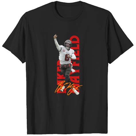 Limited Edition Tees: Keep an eye out for limited edition Baker Mayfield t-shirts that are released to commemorate special events, milestones, or collaborations. These t-shirts are often highly sought after by collectors and can become valuable pieces of memorabilia. They might feature unique designs, special packaging, or autographs from Baker Mayfield himself.