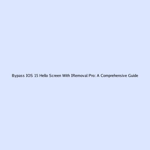Bypass IOS 15 Hello Screen With IRemoval Pro: A Comprehensive Guide