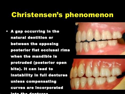 Alright, let’s get down to business and really understand what this Christensen phenomenon is all about. In simple terms, it describes the anterior opening that occurs in the occlusion of a complete denture patient when the mandible moves from centric relation to protrusive. Think about it: when you bite down normally, your back teeth (molars and premolars) are touching. But as you slide your jaw forward, if everything isn’t set up perfectly, those back teeth can actually lose contact, and you get this gap, especially at the front. This phenomenon is named after Dr. Alfred G. Christensen , who highlighted its significance in denture occlusion. Now, why is this anterior opening such a big deal? Well, it directly impacts the stability and function of the dentures. If the back teeth lose contact during protrusive movements, the dentures can become unstable. This means they might rock, dislodge, or even pop out, especially when the patient is chewing or speaking. Imagine trying to eat your favorite crunchy apple or having an important conversation, and your dentures are constantly moving around. It’s not just uncomfortable; it’s downright embarrassing and frustrating for the patient. This instability can lead to sore spots, difficulty chewing, and a general lack of confidence in wearing the dentures. The goal with complete dentures is to achieve a stable, functional occlusion that mimics natural dentition as much as possible. The Christensen phenomenon is a direct challenge to that goal because it indicates a lack of balanced, harmonious movement between the upper and lower dentures. It’s a red flag signaling that the posterior teeth are not providing adequate support or guidance during mandibular excursions. Therefore, recognizing and managing this phenomenon is absolutely critical for achieving predictable and satisfactory results in complete denture prosthodontics. We need to ensure that all occlusal contacts are maintained throughout the range of mandibular movement, providing a stable tripod of support. Missing posterior contacts during excursions is a fundamental flaw that needs correction. The ideal scenario is to have continuous, balanced contact, ensuring the dentures stay put no matter what the patient does with their jaw. This is where proper anterior guidance and occlusal scheme selection come into play.