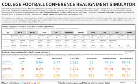 • Stay Informed about Potential Changes : Conference realignment is an ongoing process. Use these simulators to stay updated on the latest discussions, rumors, and potential changes in the college football landscape. Be ahead of the game by exploring potential scenarios and understanding their implications.