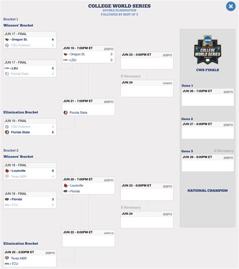 • ESPN Website: This is your go-to hub for all things CWS. Just head to ESPN.com and navigate to the college baseball section. You’ll find a dedicated section for the College World Series, with live scores, game schedules, brackets, team stats, and more.