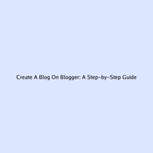 Create A Blog On Blogger: A Step-by-Step Guide