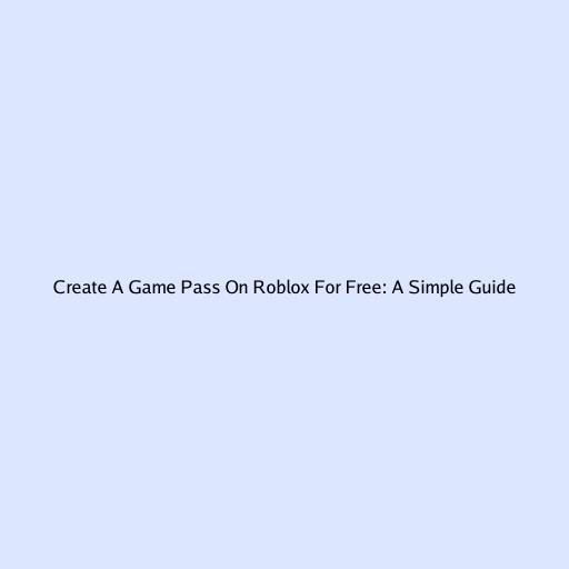 Create A Game Pass On Roblox For Free: A Simple Guide