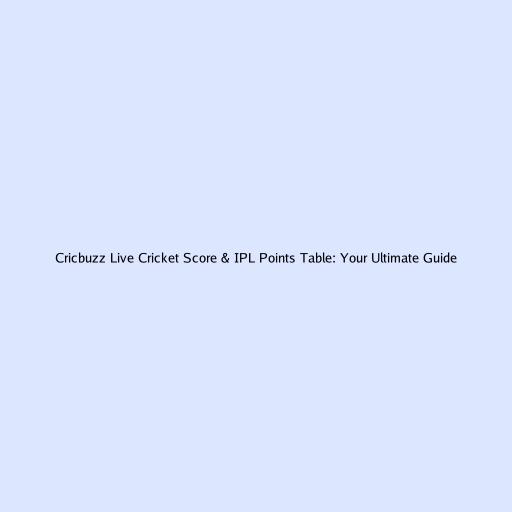 Cricbuzz Live Cricket Score & IPL Points Table: Your Ultimate Guide