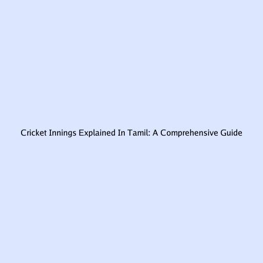 Cricket Innings Explained in Tamil: A Comprehensive Guide