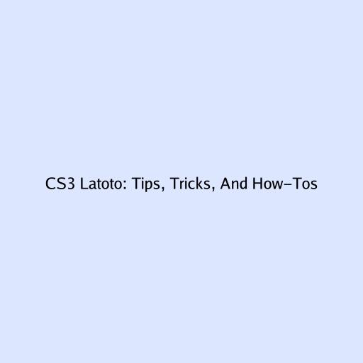 CS3 Latoto: Tips, Tricks, And How-Tos