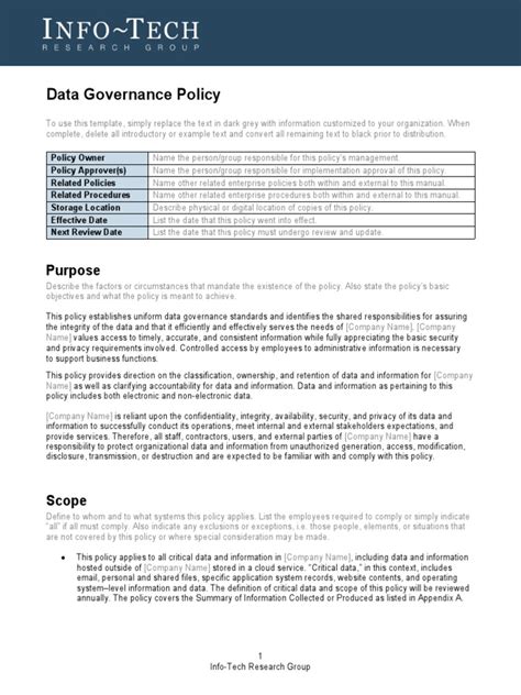 Hey everyone! So, you’re on the hunt for some awesome data governance policy examples , right? Maybe you’re trying to get your head around what a good policy actually looks like, or perhaps you need a solid template to kickstart your own. Whatever your reason, you’ve landed in the perfect spot! Today, we’re diving deep into the nitty-gritty of data governance policies, arming you with insights and pointing you towards some fantastic resources. We’ll explore what makes a policy effective, break down key components, and even share where you can snag some real-world examples that are actually usable. Forget boring, jargon-filled documents; we’re talking about making data governance work for you and your organization. So, buckle up, grab your favorite beverage, and let’s get this data governance party started!