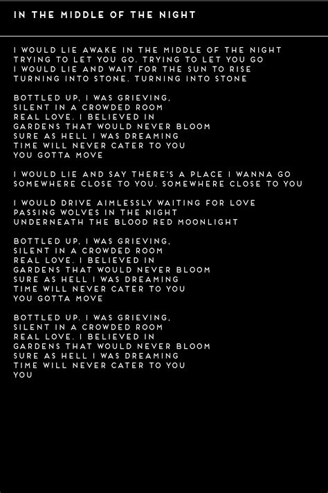 As the protagonist continues their journey, the second verse often delves into their thoughts and memories. This is where the song begins to explore the deeper themes and meanings that lie beneath the surface. The lyrics might evoke specific memories—moments of joy, sorrow, or regret—that are triggered by the sights and sounds of the night. These memories could be fragmented and disjointed, reflecting the protagonist’s emotional state, or they could be vivid and detailed, providing insight into their past experiences. The use of imagery and metaphor becomes particularly important in this verse, as the songwriter uses evocative language to convey complex emotions and ideas.