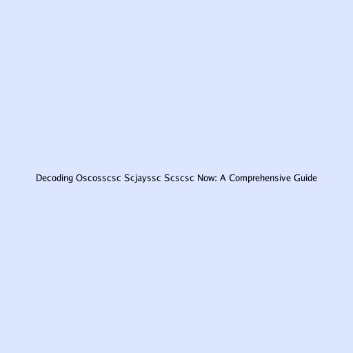 Decoding Oscosscsc Scjayssc Scscsc Now: A Comprehensive Guide