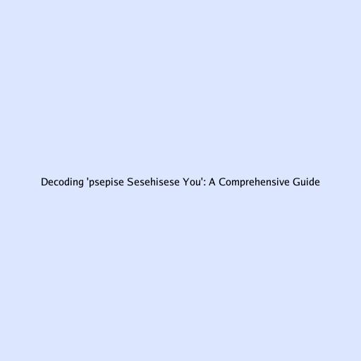 Decoding 'psepise Sesehisese You': A Comprehensive Guide