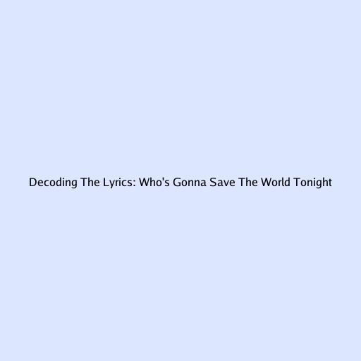 Hey music lovers! Ever found yourself completely hooked on a song, humming the tune all day, but still scratching your head about what the lyrics really mean? Well, you’re not alone! Today, we’re diving deep into the electrifying anthem “Who’s Gonna Save the World Tonight,” a track that’s got us all thinking. We’ll be breaking down the lyrics, exploring the potential meanings, and maybe even uncovering some hidden messages. So, grab your headphones, crank up the volume, and let’s get started on this lyrical adventure! We’ll start with the most popular and the reason why we are here, to find out the lyrics.