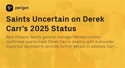 Hey guys! Let’s dive deep into Derek Carr’s status , examining his current situation, his performance on the field, and what the future might hold for the veteran quarterback. This is a comprehensive look, so buckle up! We’ll cover everything from his team dynamics to his individual stats, all to give you a clear picture of where Derek Carr stands in the NFL today. We’ll be looking at his recent performances, how he’s meshing with his new team, and what the analysts are saying about his potential. It’s a fascinating time for Carr, and we’re here to break it all down for you, making sure you’re up-to-date with all the latest information. We’ll also be touching upon the challenges he’s facing and the opportunities that lie ahead. The goal is simple: to keep you in the know about one of the league’s most talked-about players. We’ll explore his strengths, his weaknesses, and how he’s adapting to the ever-changing landscape of professional football. So, whether you’re a die-hard fan or just a casual observer, this is your one-stop shop for everything Derek Carr! We’ll provide you with all the necessary insights and analysis. This deep dive aims to offer clarity and perspective. Get ready to explore the twists and turns of Derek Carr’s career. Let’s get started!