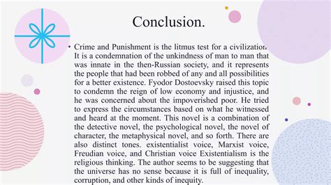 Finally, the novel concludes with a powerful, albeit subtle, affirmation of faith and the possibility of a spiritual awakening. While not a direct quote from the text, it encapsulates the final message Dostoevsky imparts through Raskolnikov’s eventual, tentative steps toward healing: “If he had been asked whether he wished to die or to live, he would have said: ‘to live and die in prison.’” This profound statement, representing Raskolnikov’s state at the end of the novel, signifies a monumental shift in his perspective. He has moved from a desire to transcend ordinary life and its moral laws to an acceptance of suffering and a willingness to endure punishment as a means of atonement and potential spiritual rebirth. This acceptance of imprisonment is not a surrender to despair, but a conscious choice to embrace the consequences of his actions and find meaning within them. It suggests that true freedom can be found not in escaping suffering, but in confronting it with humility and faith. The path to redemption is shown to be through accepting responsibility and enduring the consequences, rather than intellectual justifications or attempts to escape. This ending offers a complex view of redemption: it’s not about erasing the past, but about transforming one’s relationship with it. Raskolnikov’s desire to live and die in prison indicates a profound internal change. He no longer seeks to be an extraordinary man above the law; he seeks to be a man who can find spiritual solace even within the confines of a penal colony. The endurance of suffering becomes a path toward purification and understanding. Dostoevsky doesn’t offer a simple happy ending, but a deeply realistic portrayal of the difficult and ongoing process of spiritual healing. The hope for resurrection , both literal and metaphorical, is present, suggesting that even after the deepest fall, a new life can begin. This signifies the triumph of faith and love over nihilism and despair. The reconciliation with self and society begins with accepting one’s place and responsibilities, however painful they may be. The ultimate meaning of life , for Dostoevsky, seems to lie in this capacity for spiritual growth and the search for truth, even in the darkest of circumstances. The novel leaves us with the enduring image of a man beginning a long, arduous journey toward wholkah, guided by love and faith, demonstrating that even the most grievous sins do not preclude the possibility of a redeemed existence. The acceptance of fate and consequence is a critical step towards finding peace.
