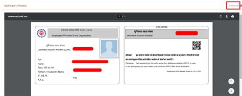 Clicking on ‘UAN Card’ will display your UAN card on the screen. You’ll see your UAN, name, date of birth, and other relevant details. To download the card, simply click on the ‘Download’ button. This will download the UAN card in PDF format to your device.