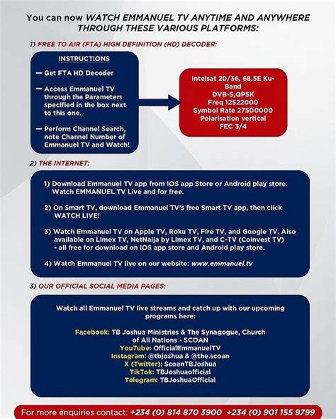First, you’ll need to register as an Emmanuel TV partner. You can do this by visiting the official Emmanuel TV website. Look for the “Partnership” or “Donate” section. You’ll find a registration form where you’ll need to provide some basic information, such as your name, contact details, and location. Make sure to use a valid email address, as this is where you’ll receive important updates and confirmations.