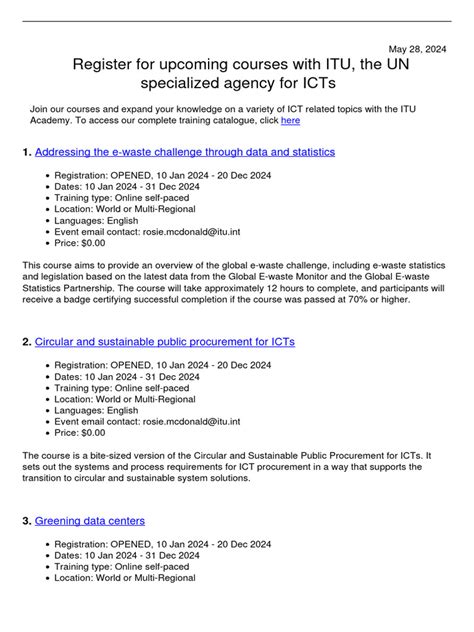 • Training Materials: The ITU also offers a variety of training materials and educational resources to help people build their skills and knowledge in ICTs.