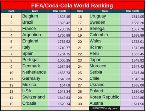Now, how do you actually read the FIFA rankings table ? Understanding how to interpret the table is key to extracting meaningful insights. The FIFA rankings table presents a clear snapshot of the relative strengths of the world’s national teams. It’s organized in a simple, easy-to-understand format. Usually, the table is structured with the team’s ranking position, their name, their total ranking points, and their movement compared to the previous ranking period. The teams are listed in descending order, with the top-ranked team at the top of the table. The ranking position is the most obvious column, indicating where each team stands in the global hierarchy. The team name is included for identification.