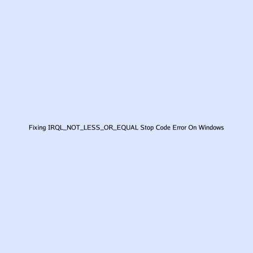 Hey everyone, ever been chilling on your PC, maybe gaming or working on something important, and suddenly – bam! – your screen goes blue, displaying a Windows stop code error IRQL_NOT_LESS_OR_EQUAL ? Yeah, it’s one of those moments that makes your heart skip a beat, isn’t it? This particular blue screen of death (BSOD) error is super common, and trust me, you’re definitely not alone if you’ve encountered it. But don’t panic, guys! While it sounds super technical and intimidating, the IRQL_NOT_LESS_OR_EQUAL error is often fixable with a bit of patience and the right steps. This guide is all about helping you understand what this error means, why it happens, and most importantly, how to get rid of it so you can get back to your digital life without any more annoying interruptions. We’ll dive deep into practical, easy-to-follow solutions that even a tech novice can handle, so let’s roll up our sleeves and get your Windows machine running smoothly again. Our goal here is to provide you with a comprehensive walkthrough, turning a frustrating problem into a manageable task. We understand how disruptive a sudden system crash can be, especially when you’re in the middle of a crucial task or an intense gaming session. This IRQL_NOT_LESS_OR_EQUAL stop code error can manifest seemingly out of nowhere, leading to data loss if you haven’t saved your work, or simply causing immense frustration. The good news is that for many users, this isn’t a sign of a completely dead computer, but rather an indicator of a conflict or issue that needs addressing. We’ll explore the common culprits, from software glitches to hardware snags, arming you with the knowledge to diagnose and fix the problem effectively. So, buckle up and let’s conquer this pesky blue screen together, ensuring your system’s stability and your peace of mind.