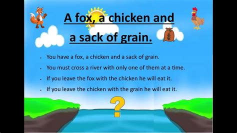 Hey guys! Ever stumbled upon a riddle that just makes your brain do a little pretzel twist? The fox, chicken, and grain riddle is one of those classic brain teasers that has stumped folks for ages. It’s simple in its setup but surprisingly tricky to navigate. You’ve got a farmer, a fox, a chicken, and a sack of grain, and the goal is to get them all across a river using a boat that can only carry the farmer and one other item at a time. Sounds easy, right? Well, the catch is, if you leave the fox alone with the chicken, the fox will eat it. And if you leave the chicken alone with the grain, well, you guessed it – the chicken will gobble it all up! So, how do you pull off this precarious river crossing without anyone becoming a snack or a meal? This article is your go-to guide, your secret weapon, to not only solve this riddle but to understand the logic behind it. We’ll break down the steps, explain why certain moves are crucial, and maybe even get you thinking about other logic puzzles. Stick around, because by the end of this, you’ll be the undisputed champion of the fox, chicken, and grain riddle, ready to impress your friends with your newfound puzzle-solving prowess. Let’s dive in and demystify this age-old conundrum, shall we?