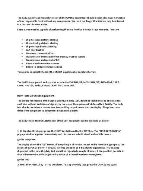 Alright, let’s get real about why daily GMDSS checks are not something you can afford to skip, guys. Imagine you’re out in the middle of nowhere, the weather’s turned nasty, and you need to send out a distress call. If your radio is dead, or your EPIRB hasn’t been tested and isn’t working, that call for help might never get through. That’s a chilling thought, right? The GMDSS equipment is designed to be incredibly reliable, but like any sophisticated piece of technology, it can develop issues. Batteries can lose their charge, connections can become loose, software can glitch – you name it. These daily tests are your first line of defense against potential equipment failure. They’re quick, they’re simple, and they can make the difference between a minor inconvenience and a full-blown maritime emergency. Furthermore, maritime regulations, like those set by the IMO (International Maritime Organization), mandate these checks. Failing to perform them can lead to penalties, and more importantly, it compromises the safety standards of your vessel. Think of it as a safety ritual, a few minutes each day dedicated to ensuring your communication systems are ready for the worst. It’s not just about ticking a box; it’s about peace of mind knowing that your GMDSS setup is fully functional and ready to perform its most crucial job: saving lives. Investing a few minutes each day in these checks dramatically reduces the risk of equipment failure during a critical situation, ensuring that distress signals are transmitted effectively and efficiently when they are needed the most. It’s a small effort with potentially life-saving rewards.