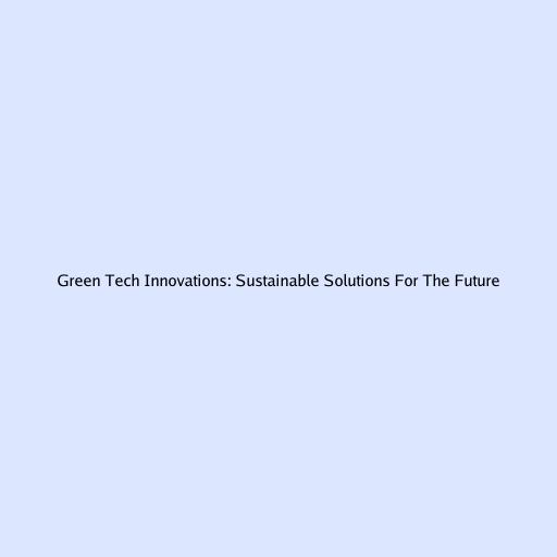 Green Tech Innovations: Sustainable Solutions For The Future