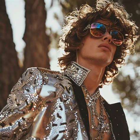 Next up: patterns . Geometric designs, floral prints, paisley, and tie-dye are all fair game. These patterns add visual interest and personality to your outfit. A groovy guy isn’t afraid to rock a bold patterned shirt or a pair of funky patterned pants. Consider incorporating these patterns into your wardrobe through shirts, jackets, pants, or even accessories like scarves or pocket squares. When mixing patterns, try to balance the scale and color palette to avoid overwhelming the eye. For example, pair a large floral print with a smaller geometric pattern or stick to a cohesive color scheme. Don’t be afraid to experiment and find what works best for you.