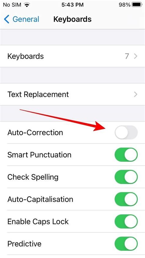 7. Enable Autocorrection: Ensure that the Auto-Correction toggle is turned on within the Keyboard settings. This ensures that your iPhone will automatically correct misspelled words in Portuguese.