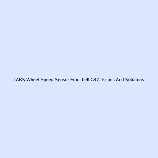 IABS Wheel Speed Sensor Front Left G47: Issues And Solutions