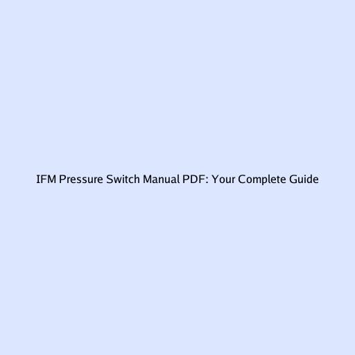 IFM Pressure Switch Manual PDF: Your Complete Guide