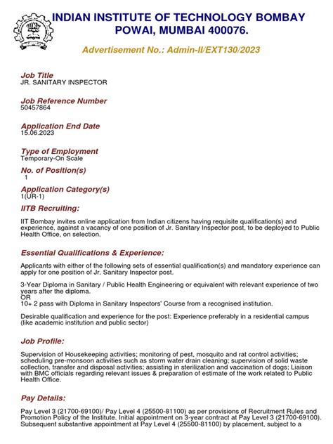 Okay, let’s get down to the meat of the matter: the IIT Bombay Recruitment 2025 positions and departments. IIT Bombay hires across a wide range of roles, so whether you’re a seasoned professional or a fresh graduate, there’s likely a position that fits your profile. Typically, you’ll find openings in departments such as Engineering (various disciplines), Science, Humanities, Management, and various administrative and support roles. Think about it: research scientists, professors, lecturers, lab technicians, administrative officers, librarians, and many more. The specific positions available will depend on the institute’s needs at the time, so it’s essential to stay updated through official channels. To give you a clearer picture, some of the key positions you might find include: Professors (various levels: Assistant, Associate, Professor), Research Associates and Scientists, Technical Officers, Junior Engineers, Administrative and Support Staff, and various project-based roles. The types of roles change depending on the needs of the institution, and its crucial to check the official site for detailed info. This is where you need to do some homework and research the current openings at the time of recruitment. Each department at IIT Bombay contributes to the institute’s overall mission of education, research, and innovation. The institute’s departments are like diverse teams, each bringing their unique talents to the field. For instance, the engineering departments might focus on cutting-edge research in areas such as artificial intelligence, robotics, and sustainable energy. The science departments could be involved in groundbreaking discoveries in fields like biotechnology, physics, and chemistry. The humanities and social sciences departments are crucial for providing a broader understanding of the world and the role of technology and innovation within it. Administrative and support staff are the unsung heroes who keep everything running smoothly. So, when considering the IIT Bombay Recruitment 2025 , think about where your skills and interests align, and be sure to check what’s currently being offered.
