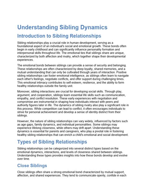 Age differences in sibling relationships can create a fascinating mix of dynamics. When siblings are far apart in age, it’s like they’re growing up in completely different eras, even within the same family. An older sibling might feel like they have to take on a parental role, which can lead to resentment or a sense of lost childhood. Conversely , the younger sibling might feel babied or constantly compared to their older, more accomplished sibling. Think about the classic scenario where the older child gets all the praise for being the “responsible one,” while the younger one struggles to find their own identity. That can be tough! Smaller age gaps have their own set of challenges. Siblings closer in age often experience more rivalry and competition. They might be vying for the same resources, attention, or even social circles. This can lead to constant comparisons, squabbles, and feelings of inadequacy. It’s like they’re constantly measuring themselves against each other, which can be exhausting. On the other hand, close-aged siblings often share more common interests and can form incredibly strong bonds based on shared experiences. They might have the same friends, enjoy the same activities, and navigate similar life stages together. Ultimately, the impact of age differences on sibling relationships is highly individual. It depends on personalities, family dynamics, and how well the parents manage to foster a supportive and equitable environment. By recognizing the potential pitfalls and celebrating the unique strengths of each sibling relationship, families can help create a positive and nurturing environment for everyone involved.