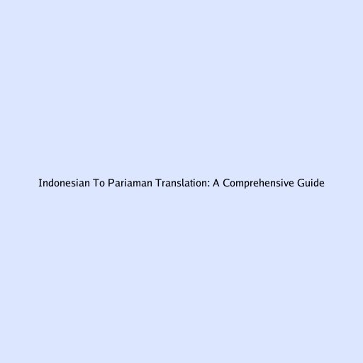 Indonesian to Pariaman Translation: A Comprehensive Guide