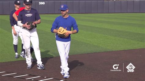 Integrate a baseball into your ladder drills to simulate game scenarios and practice fielding mechanics. For example, during the Icky Shuffle, have a partner roll a ground ball to you. As you move through the ladder, field the ground ball and make a quick throw to first base. This combines footwork, fielding, and throwing in one drill. This also helps develop quick hands and efficient fielding techniques under pressure. It transforms a simple footwork drill into a dynamic, game-like exercise . Increase the speed and difficulty of the throws as you get more comfortable. You can add a coach or teammate to throw ground balls to you as you move through the ladder. This helps build muscle memory and the ability to react instinctively.