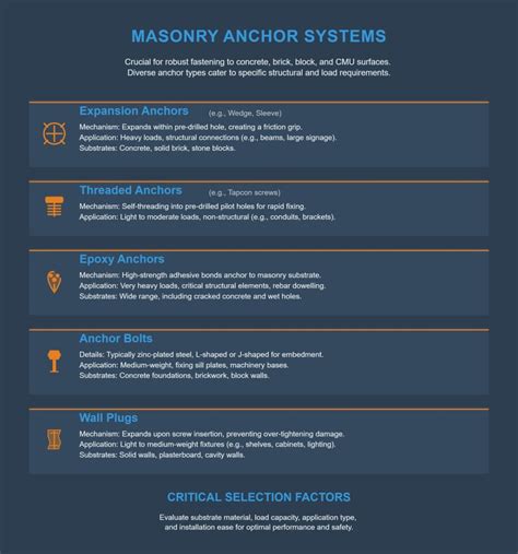 Next up, we have sleeve anchors . These anchors feature a sleeve that expands as you tighten the bolt, creating a secure grip within the base material. The sleeve prevents the anchor from spinning during installation, which is a big advantage. Sleeve anchors are especially useful in applications where the base material may be less dense or more prone to cracking, such as brick or hollow-core concrete. Because the expansion occurs within the sleeve, they distribute the load over a larger area, reducing the stress on the base material. You’ll often find these used to attach things like window frames, door frames, and even suspended ceilings. When using sleeve anchors , it’s important to select the correct length to ensure proper expansion and holding capacity. Always refer to the manufacturer’s guidelines for installation, including the required hole size and torque specifications. Sleeve anchors are a great choice when you need a reliable and versatile anchor that won’t damage the base material. These are perfect for situations where you need to avoid cracking the concrete or other fragile materials.