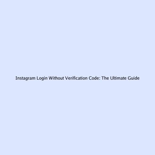 Instagram Login Without Verification Code: The Ultimate Guide
