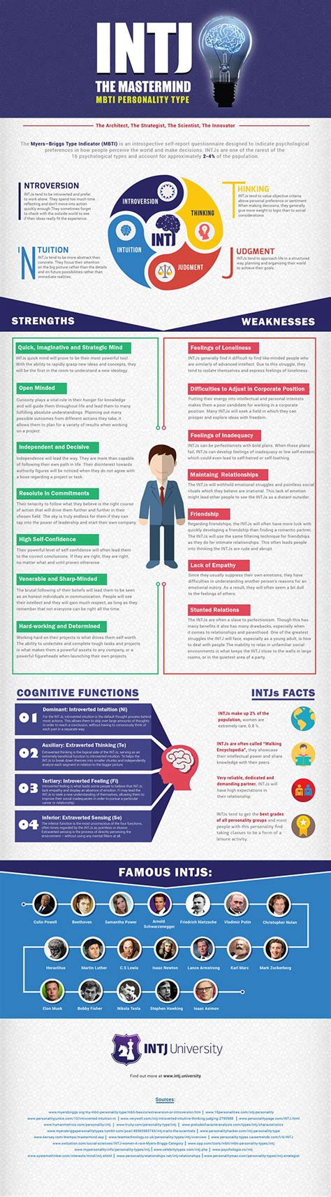 When we talk about INTJ strengths , we’re looking at a powerhouse of cognitive abilities. First off, their strategic thinking is off the charts. They can analyze complex situations, identify key variables, and devise long-term plans with remarkable foresight. This makes them invaluable in fields that require deep analysis and planning, like science, technology, finance, and even chess! Secondly, their decisiveness is a major asset. Once an INTJ has analyzed a situation and arrived at a conclusion, they tend to act on it quickly and with conviction. They don’t get bogged down by indecision or emotional clutter, which allows them to move forward efficiently. Another huge strength is their intellectual independence . INTJs trust their own judgment and are not easily swayed by popular opinion or tradition. This allows them to innovate and challenge the status quo, often leading to groundbreaking discoveries and advancements. They are also incredibly efficient and organized . The Judging aspect of their personality means they like structure and order. They will meticulously plan their projects, set clear goals, and work diligently to achieve them. This focus on efficiency means they don’t waste time or resources. Finally, their perseverance is legendary. Once an INTJ commits to a goal, they are incredibly determined and will overcome obstacles with sheer willpower and intellect. They don’t give up easily. The INTJ personality thrives on challenges that allow them to apply their sharp intellect and strategic prowess. They are the visionaries who can see the end goal from the beginning and chart the most logical and efficient path to get there. Their ability to remain objective, even in the face of adversity, is a testament to their strong Thinking preference. They are not afraid to make tough decisions if they believe it serves the greater good or aligns with their long-term vision. This makes them natural leaders, though they often prefer to lead through competence and strategic insight rather than charisma. The INTJ personality is a blend of profound intellect, unwavering determination, and a unique ability to conceptualize and execute complex plans. Their strengths lie in their capacity for deep analysis, their commitment to logic, and their drive to achieve excellence in whatever they pursue. They are the quiet giants who often shape the future through their innovative thinking and relentless pursuit of progress.