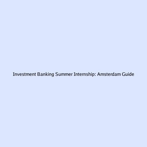 Investment Banking Summer Internship: Amsterdam Guide