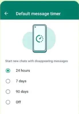5. Choose Your Timer: WhatsApp gives you a couple of options for how long messages will stick around before they vanish. You can choose from 24 hours, 7 days, or 90 days. Select the time that best suits your needs and the type of conversation you’re having. Short and sweet, or a bit more lingering? The choice is yours!