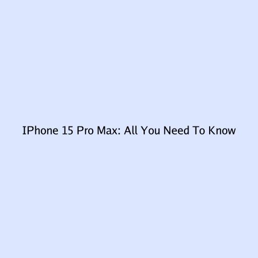 IPhone 15 Pro Max: All You Need To Know