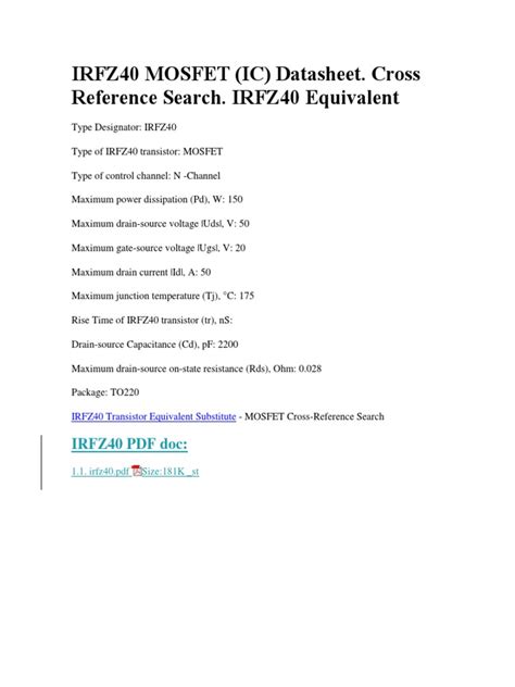 IRFZ40 MOSFET: Your Ultimate Repair & Replacement Guide