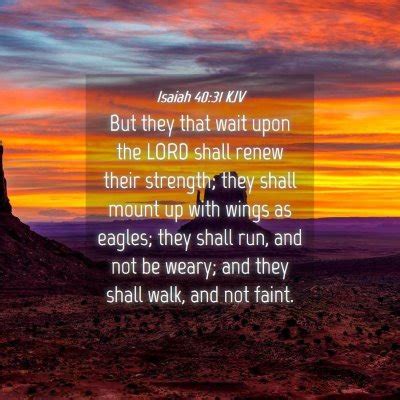 Isaiah 40:31 KJV isn’t just a beautiful piece of poetry; it’s a divine promise for those who choose to wait on the LORD . It’s a reminder that in our weakness, His strength is made perfect. So, the next time you feel drained, overwhelmed, or like you can’t take another step, remember this powerful verse. Remember that you have the ability to renew your strength , to mount up with wings as eagles , to run and not be weary , and to walk and not faint . All it takes is a heart that is willing to wait, to trust, and to depend on the Almighty God. It’s a call to action, a gentle invitation to experience the limitless power that is available to every believer who places their faith fully in Him. Let this promise be your anchor in the storms of life and your fuel for the journey ahead. God is waiting to empower you!