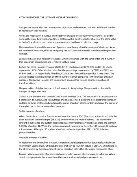 Before we get too deep into isotopes, let’s quickly recap what makes an atom, well, an atom . At the heart of every atom lies the nucleus, a tiny but dense core packed with two types of particles: protons and neutrons . Orbiting this nucleus are electrons, but for isotopes, the real action is in the nucleus. The number of protons is the absolute defining characteristic of an element. This number is called the atomic number , and it’s what you see on the periodic table. For example, hydrogen always has 1 proton, helium has 2, lithium has 3, and so on, all the way up to elements with over 100 protons. This atomic number is like an element’s unique ID card – change the number of protons, and you change the element itself. Now, neutrons are the other key players in the nucleus. They have roughly the same mass as protons but carry no electrical charge; they’re neutral. While the number of protons is fixed for an element, the number of neutrons can vary. This is precisely where the concept of isotopes comes into play. So, when we talk about different isotopes of an element, we’re talking about atoms that have the same number of protons but a different number of neutrons. This difference in neutron count affects the atom’s mass number , which is simply the sum of protons and neutrons in the nucleus. For instance, carbon (atomic number 6) has three common isotopes: carbon-12 (6 protons, 6 neutrons, mass number 12), carbon-13 (6 protons, 7 neutrons, mass number 13), and carbon-14 (6 protons, 8 neutrons, mass number 14). See? All are carbon because they have 6 protons, but their mass numbers differ due to the varying neutron counts. This subtle difference is crucial because neutrons, while not affecting the element’s identity, do influence the atom’s stability and physical properties. It’s like having identical twins who, despite looking alike and sharing genetics, might have different personalities or health predispositions. Isotopes are the atomic equivalent, and understanding this basic atomic structure is the first step to appreciating their diverse roles in science and technology. It’s all about that nuclear recipe, guys – same essential ingredients (protons), but sometimes with a little extra spice (neutrons)!