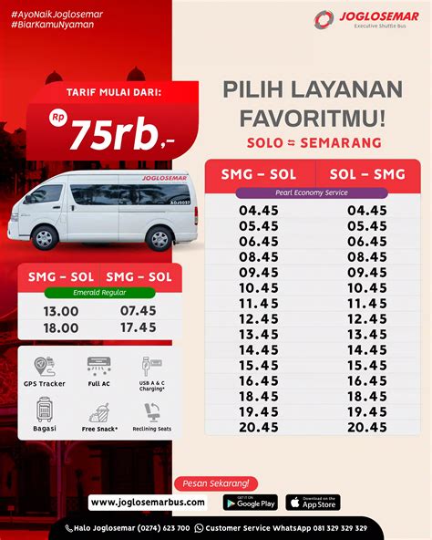 Have the contact details . Keep the Joglosemar customer service number or your booking reference handy in case of any issues or unexpected changes to the Jadwal Joglosemar Semarang Klaten . Finally, embrace the experience! Traveling by bus in Indonesia is a fantastic way to see the country and interact with locals. So, relax, enjoy the scenery, and have a great trip!